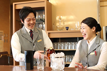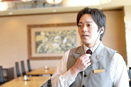 ベイリゾートホテルではフロントと料飲部を経験しました。僕はこの会社が好きですね。立場関係なく意見が反映されやすい。自分で考えたことを他の人が手伝ってくれて、それが固定化されていくのが嬉しいですし、自分の成果が表れやすいかなと思います。ずっと(今は小豆島国際ホテルにいる)岡根くんと二人三脚でやってきました。ゆくゆくはベイのフロントと料飲部にしか入っていないので、国際ホテルのほうも経験した上で、予約担当のほうに入っていきたい。社内の中では営業も経験したい。色々なことをやってみたいと思っています。